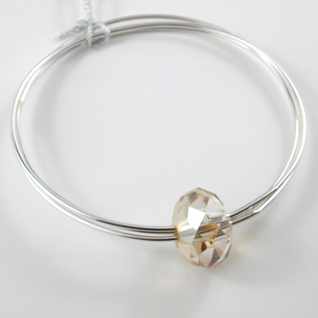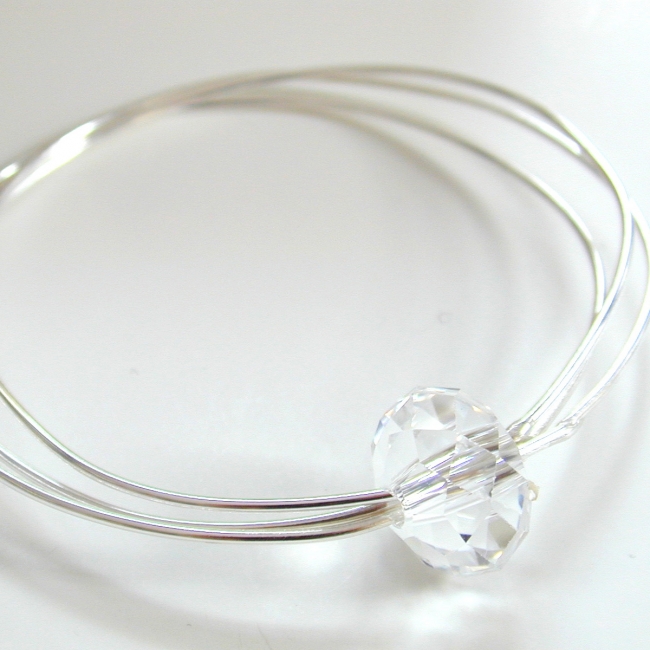 trio of sterling silver bangles with giant (18mm) crystal rondelle (bangle is approximately 2.5 inches in diameter)