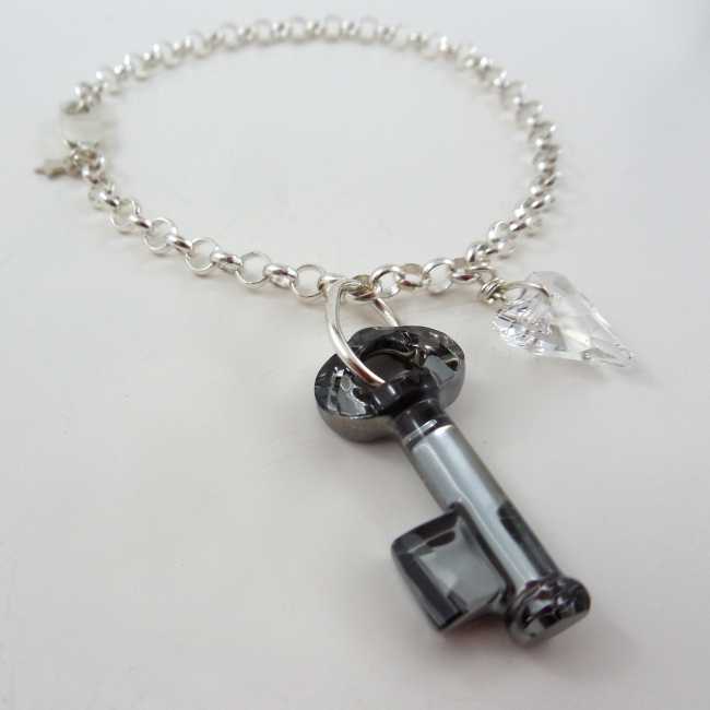 This fabulous sterling silver and crystal bracelet features a crystal key and a dainty crystal heart - full of love!