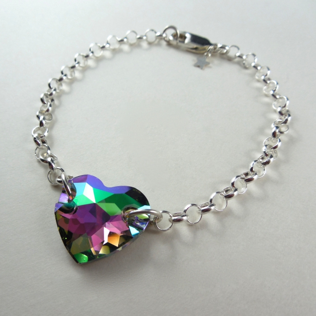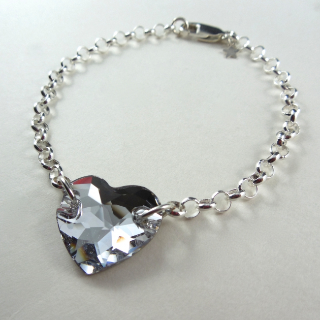 This beautiful bracelet features a Swarovski Crystal heart (16mm) centred in a sterling silver chain.