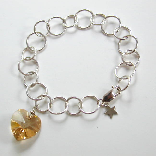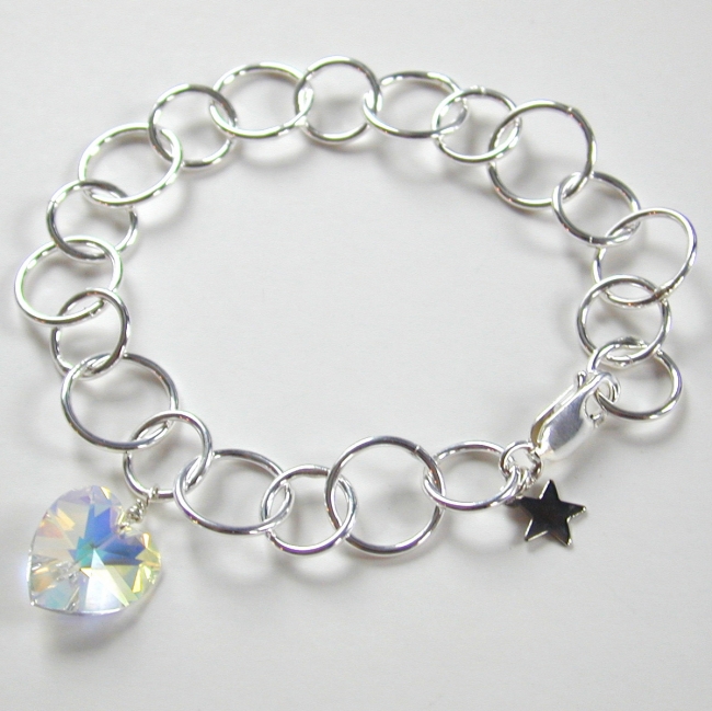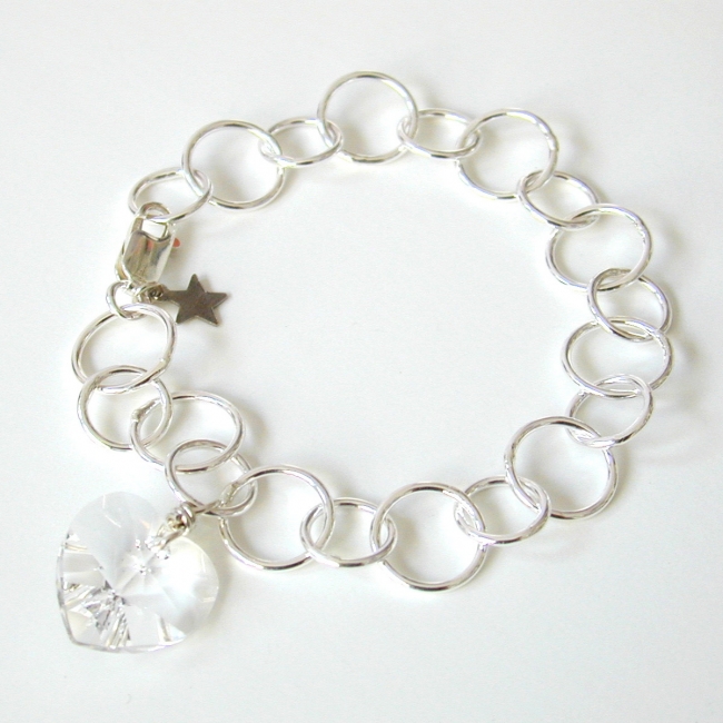 sterling silver duo size links bracelet with large (18mm) crystal heart charm