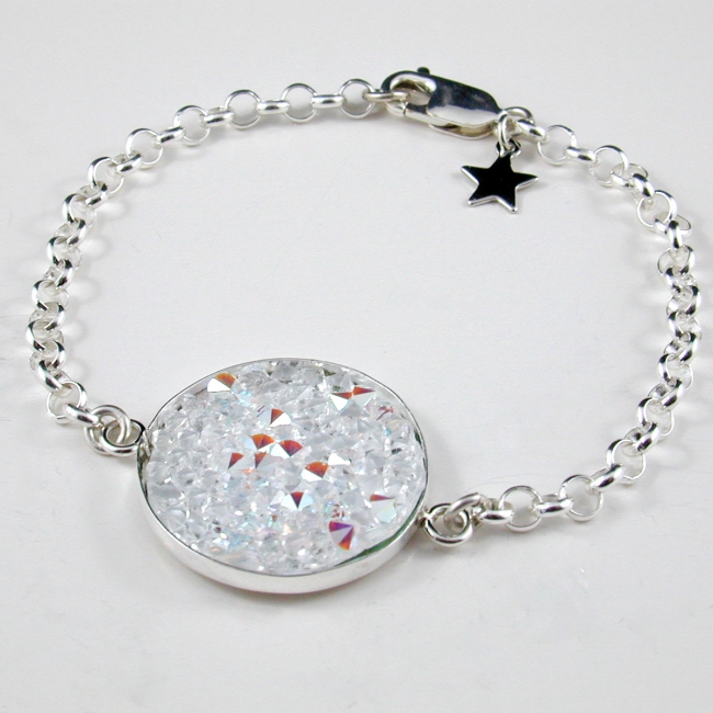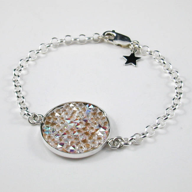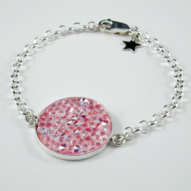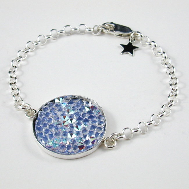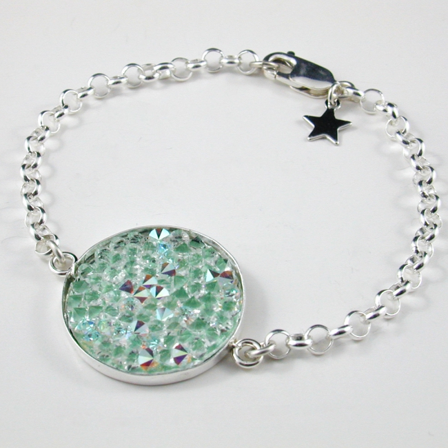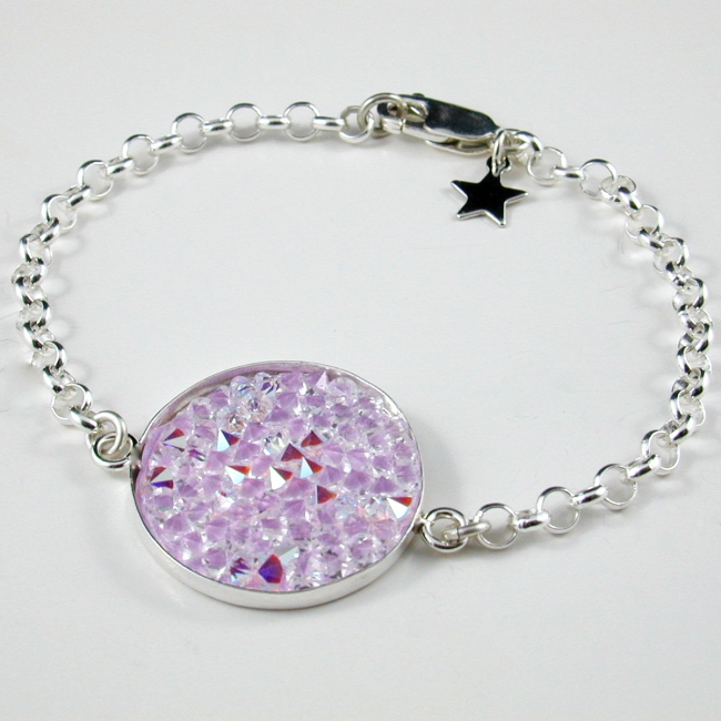 Infinite color possibilities is what this lovingly handcrafted crystal bracelet is all about! The sterling silver bezel is set with dozens of sparkly crystals in ANY color you desire! We've given you some color ideas here, but you can choose your own color favorite from The Pantone Color Guide...