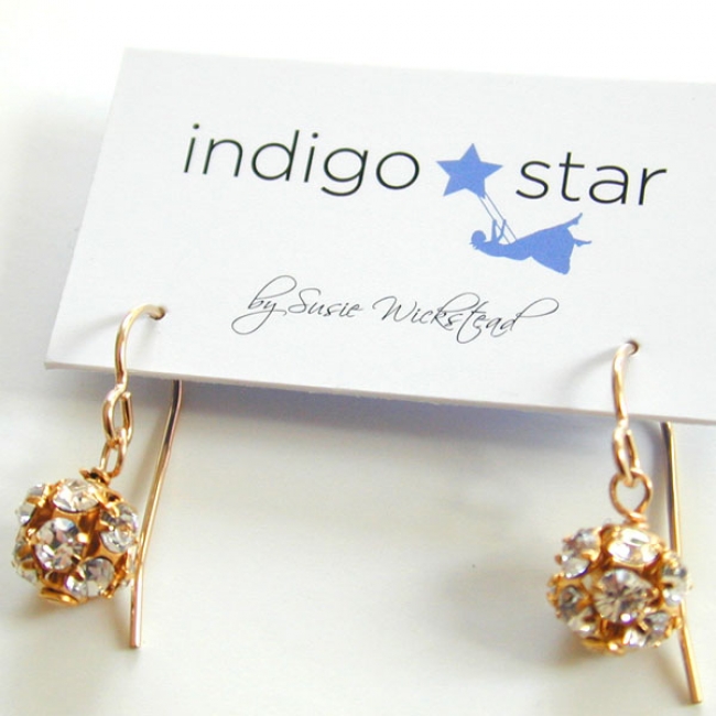 gold crystal balls on 14k gold fill ear wire
