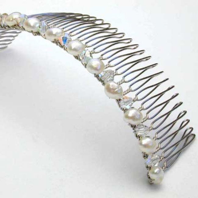 36 leg single row crystal & crystal pearl bridal tiara in silver
