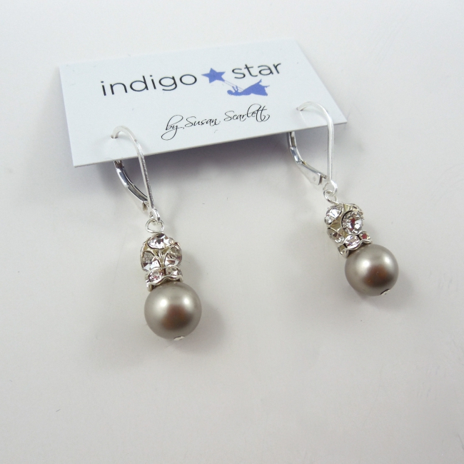 These sterling silver lever earrings feature a Swarovski Elements crystal pearl and a baby pave disco ball, for beautiful bling!