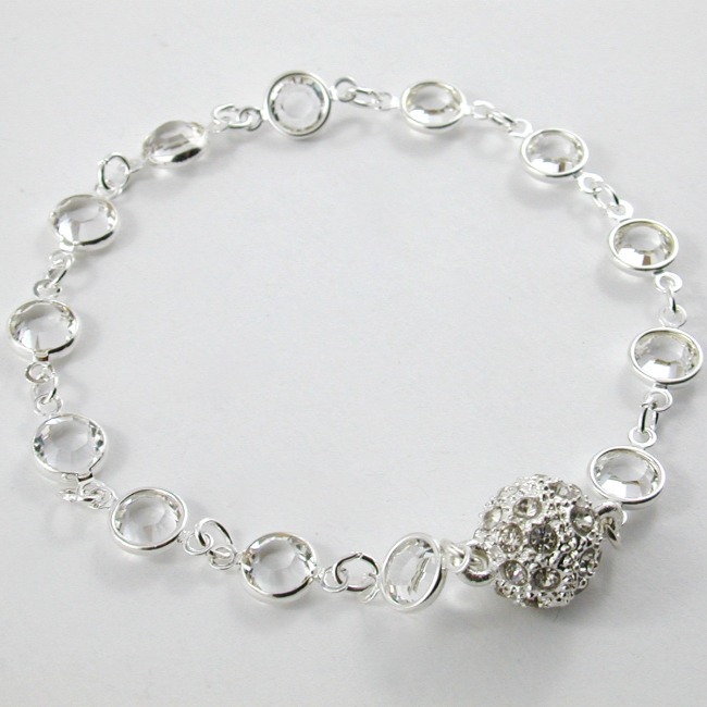 So simple, yet so brilliant in it's sparkle is this single stranded sterling silver and SWAROVSKI Elements crystal bracelet. The clasp is a magnificent magnet ball clasp set with crystals!!!