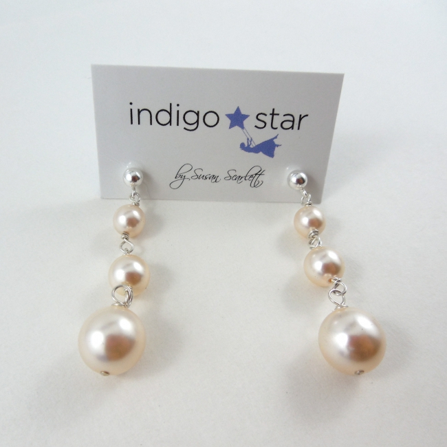 This lovely trio of Swarovski crystal pearls, drops into the perfect earring for your special day! On sterling silver ball posts.