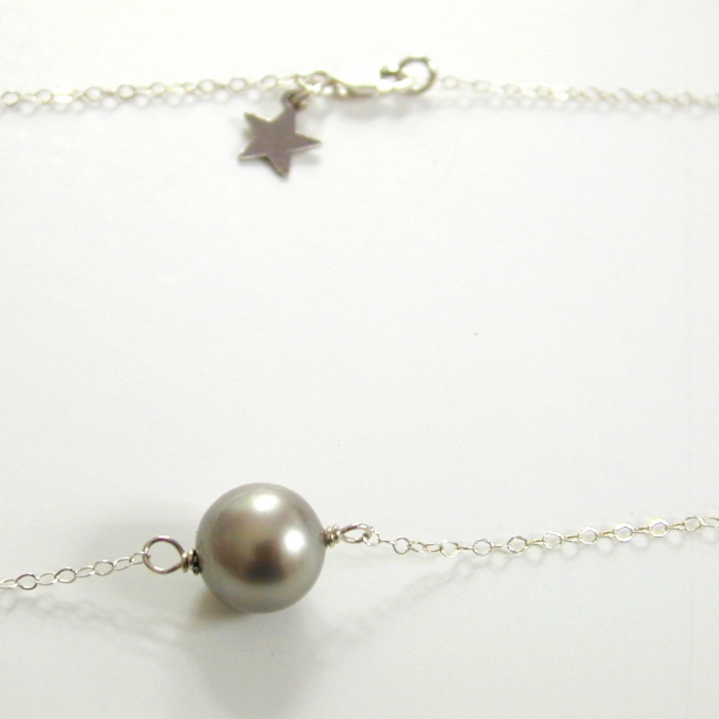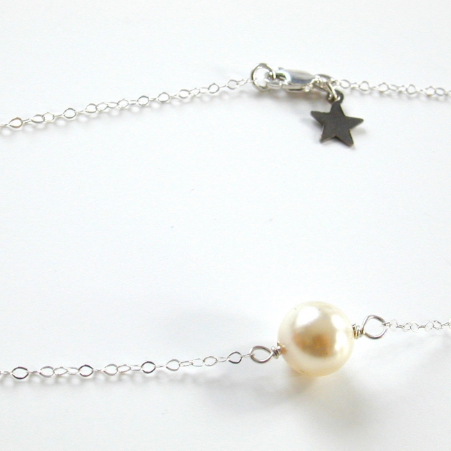 fine sterling silver necklace with centered large (10mm) crystal pearl