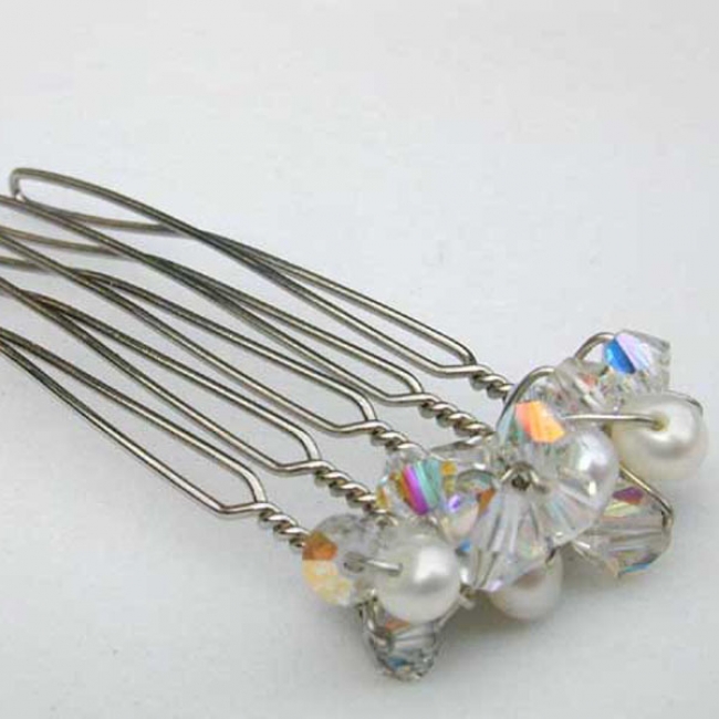 5 leg crystal & crystal pearl hair comb in silver