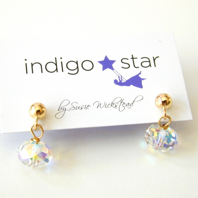 8mm crystal rondelle on 14k gold fill ball post