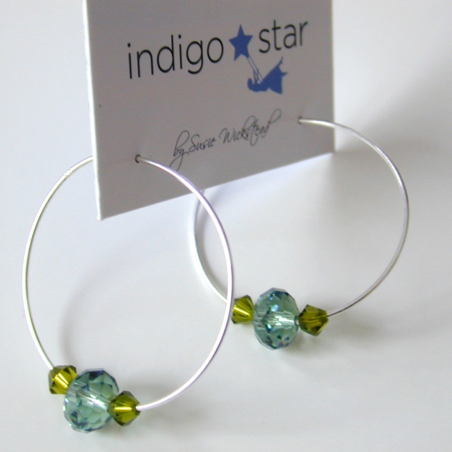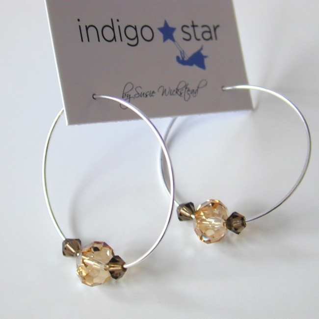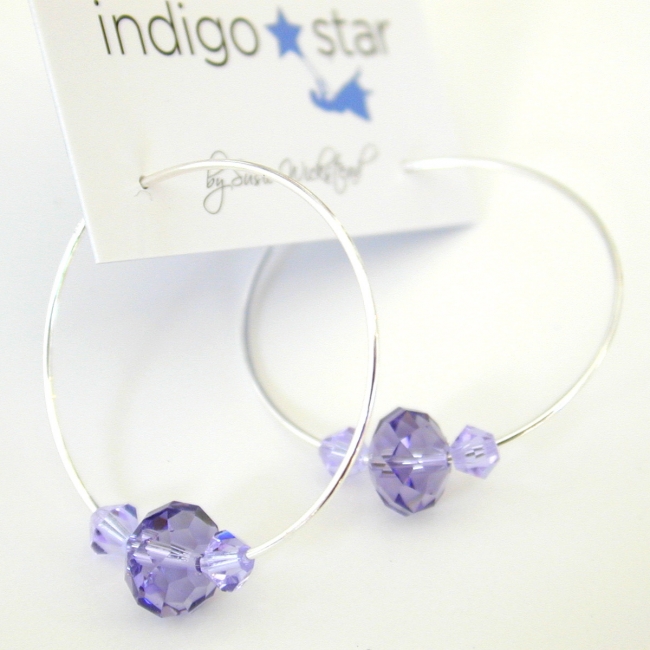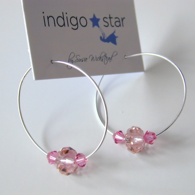 8mm crystal rondelle and bicone sandwich on thin sterling silver hoop