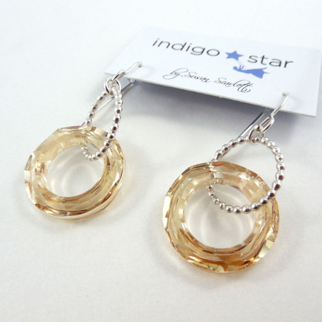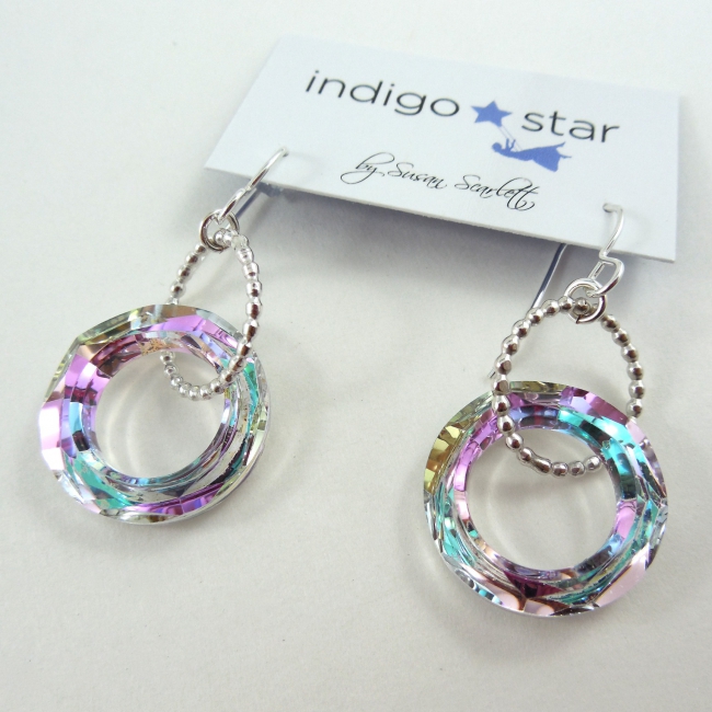 These stunning beauties are all shine with their Swarovski crystal circles dangling from sterling silver beaded wire hoops. A lovely pair of earrings!