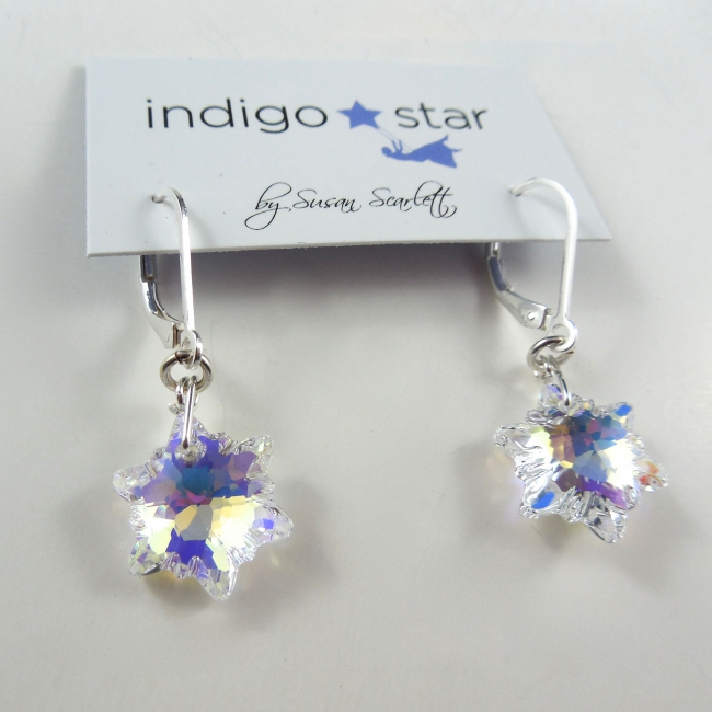 These earrings feature the beautiful edelweiss shape Swarovski crystal on sterling silver ear wires.