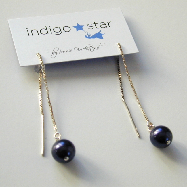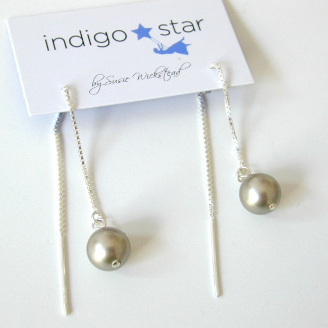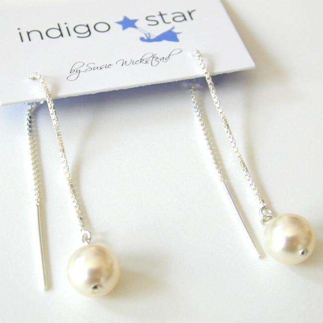 medium (8mm) crystal pearl on sterling silver ear thread