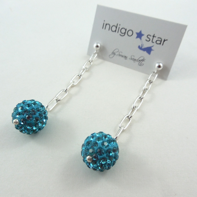 These shimmering crystal balls dangle perfectly from sterling silver chains and make such a sparkly statement in your ear!