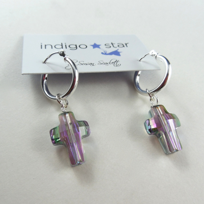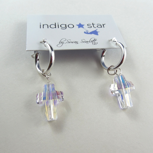 These shimmering Swarovski Crystal crosses (14mm) dangle perfectly from sterling silver hoop earrings.