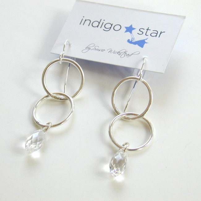 duo sterling silver hoops with crystal tear briolette on sterling silver ear wire