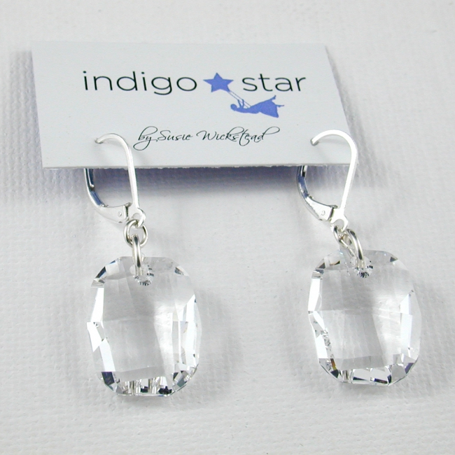 Stunning best describes these new graphic Swarovski crystal earrings. Dangling so beautifully from a silver lever hook, these beauties will add the perfect touch to any outfit.