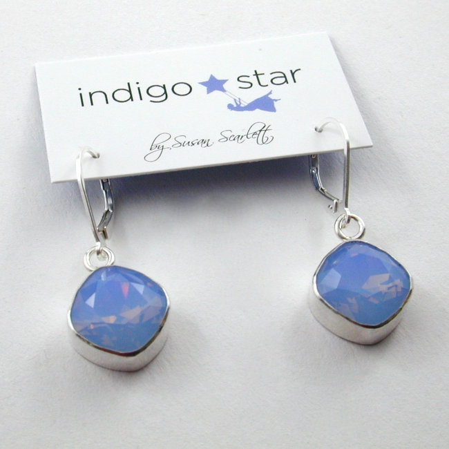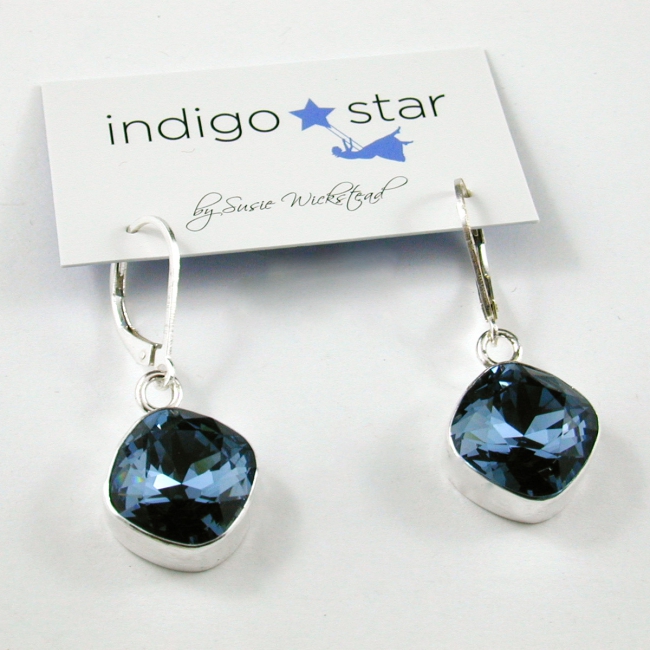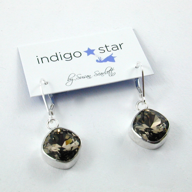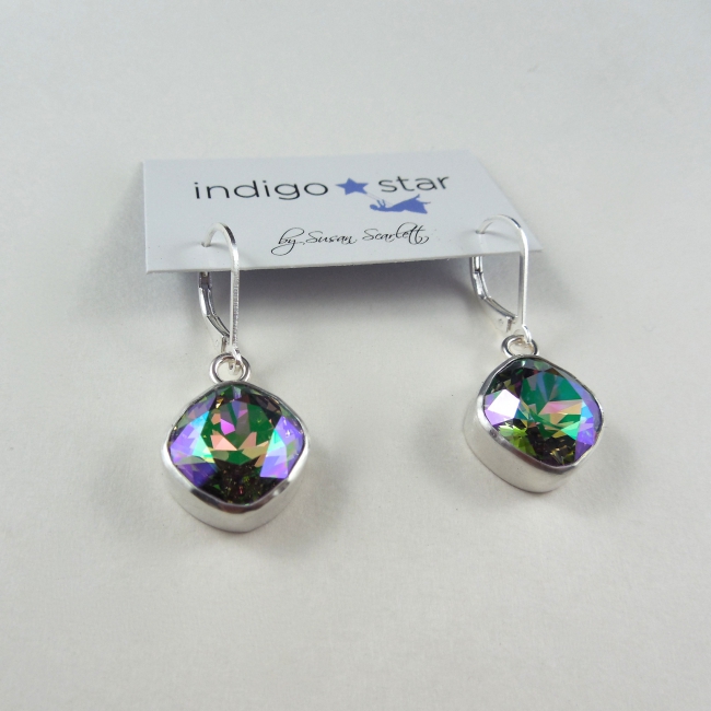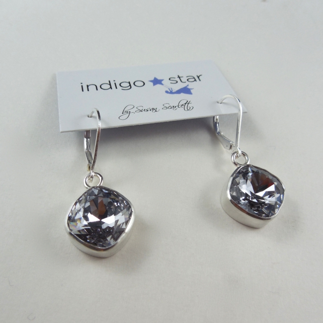 A classic square shaped Swarovski crystal hand set in a sterling silver bezel, on sterling silver lever hook make for a remarkable pair of earrings!
