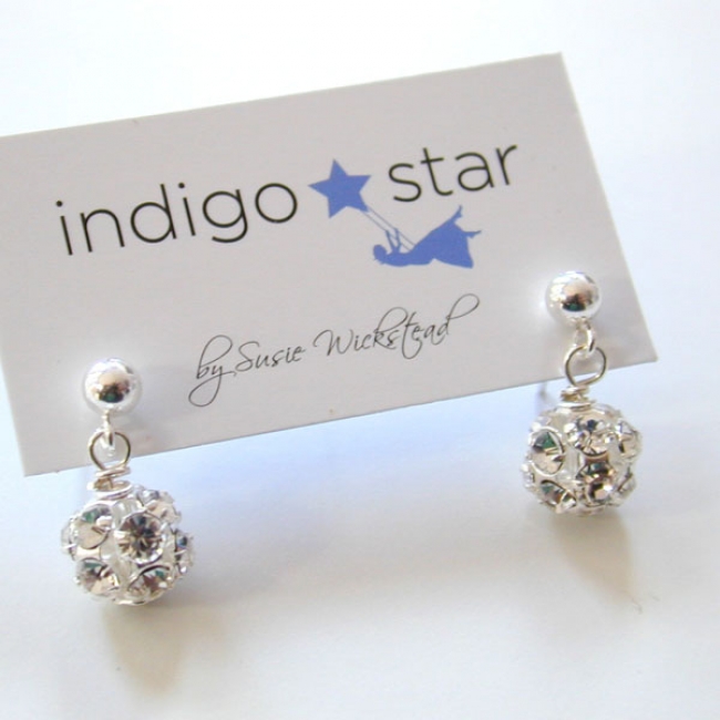 8mm silver crystal ball on sterling silver ball post