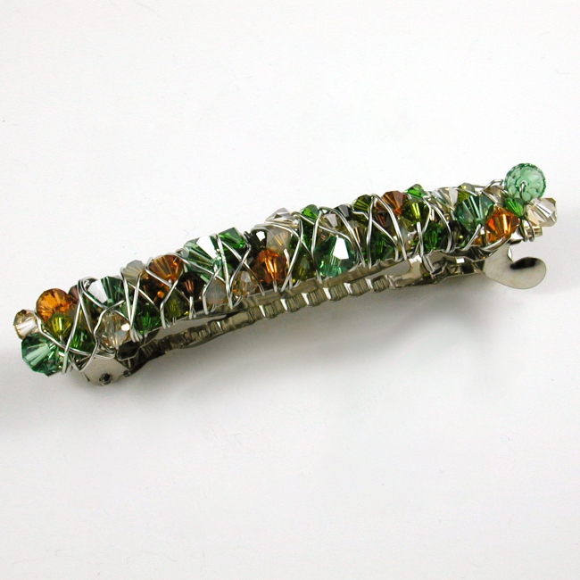 large hand wrapped crystal barrette in silver. available in any color combination.