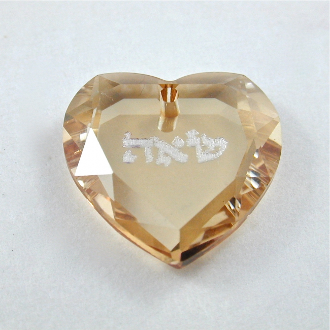 This sterling silver bracelet features a Swarovski crystal heart pendant engraved with one of the 72 Names of God, and a cluster of tiny crystals.