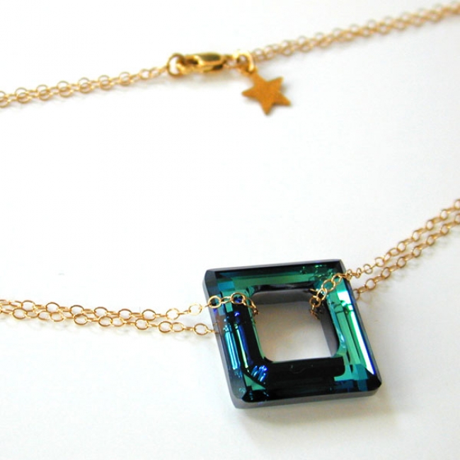 fine double 14k gold fill necklace with large (20mm) crystal square