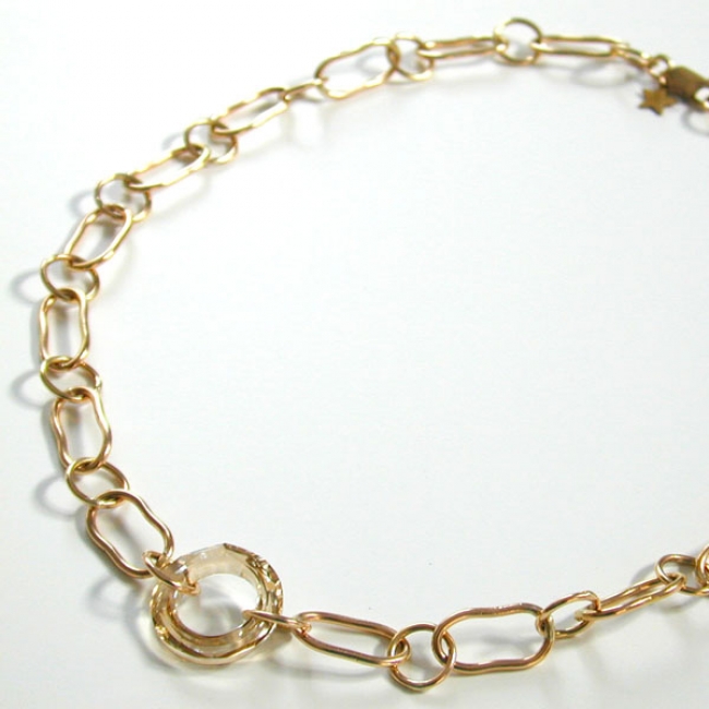 oval and round 14k gold fill links necklace with large (20mm) crystal circle