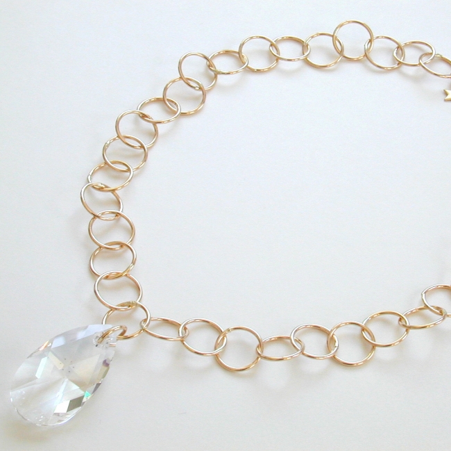 14k gold fill links necklace with giant (38mm) crystal tear drop pendant