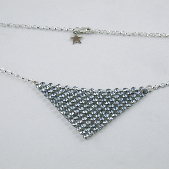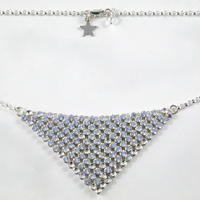 this spectacular triangle of Swarovski crystal mesh centered in a sterling silver rollo chain necklace is simply stunning on - full of sparkle and shine, it makes any outfit extraordinary!