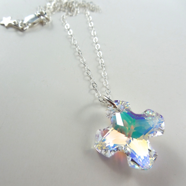 This shimmering Swarovski crystal greek cross necklace sparkles beautifully on a sterling silver necklace.