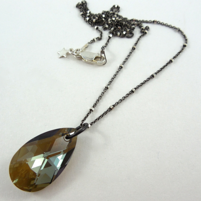 These unique 'boxy' sterling silver necklace chains with a shimmering Swarovski crystal tear drop pendant are a perfect way to add sparkle to your outfit.