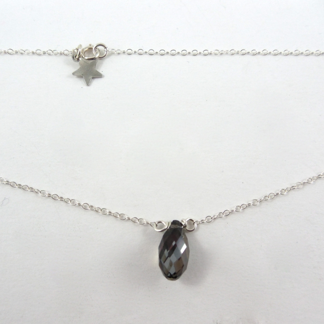 This lovely, yet simple, sterling silver necklace features a Swarovski Elements crystal briolette (in the color silver shade); perfect for any occasion.