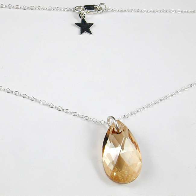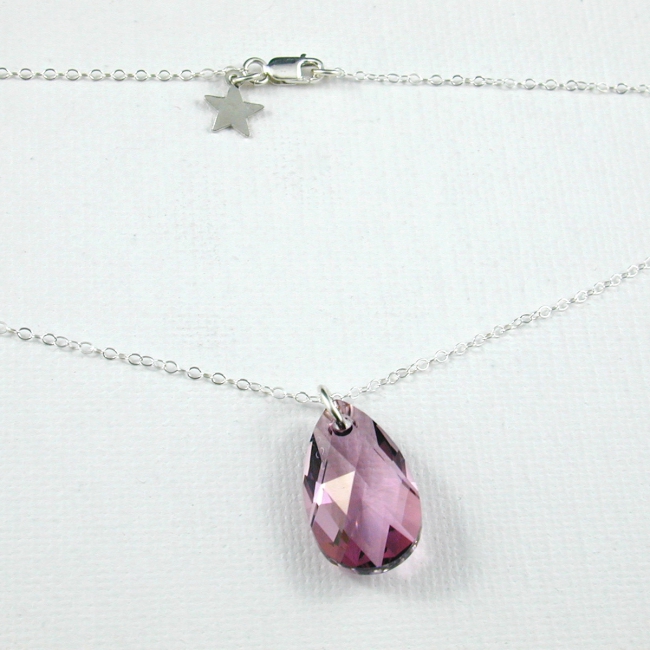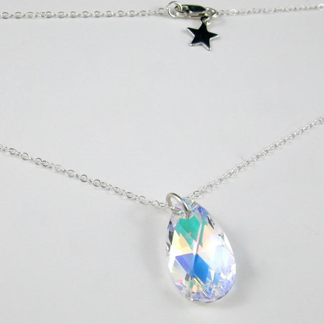 fine sterling silver necklace with medium (22mm) crystal tear drop pendant
