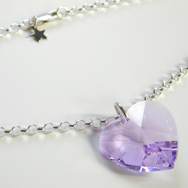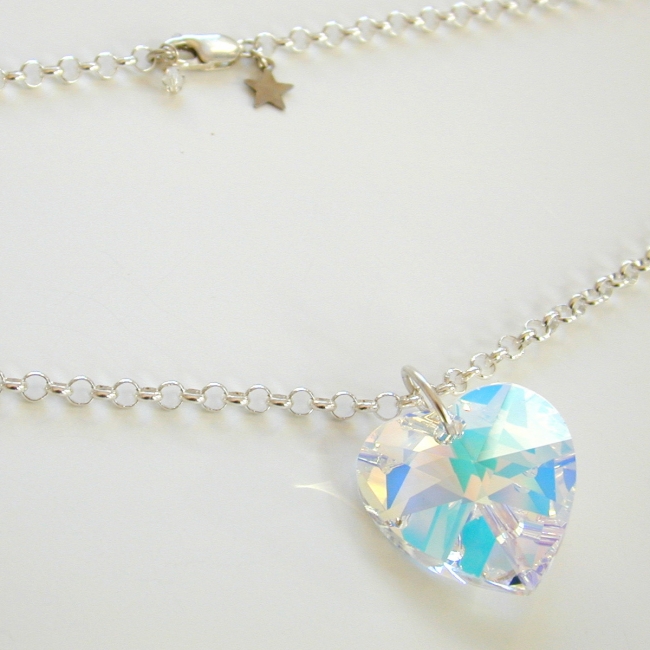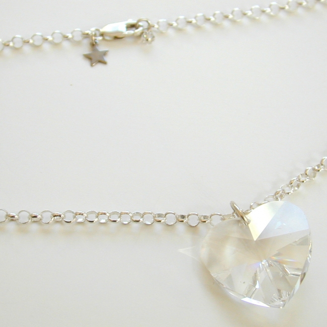 heavy sterling silver rollo chain necklace with giant (28mm) crystal heart pendant