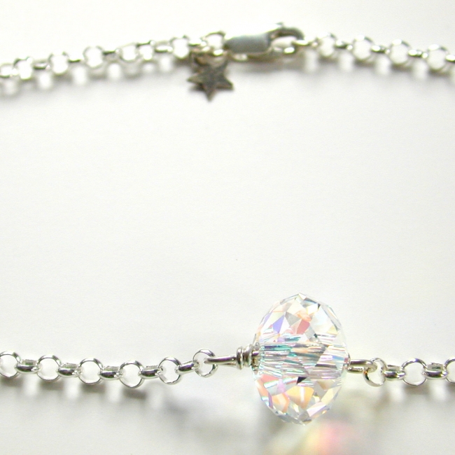 heavy sterling silver rollo chain necklace with centered giant (18mm) crystal rondelle