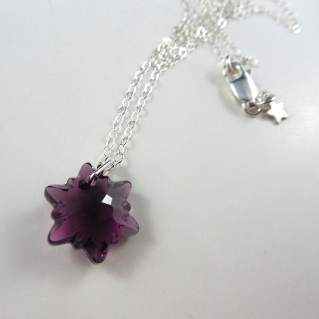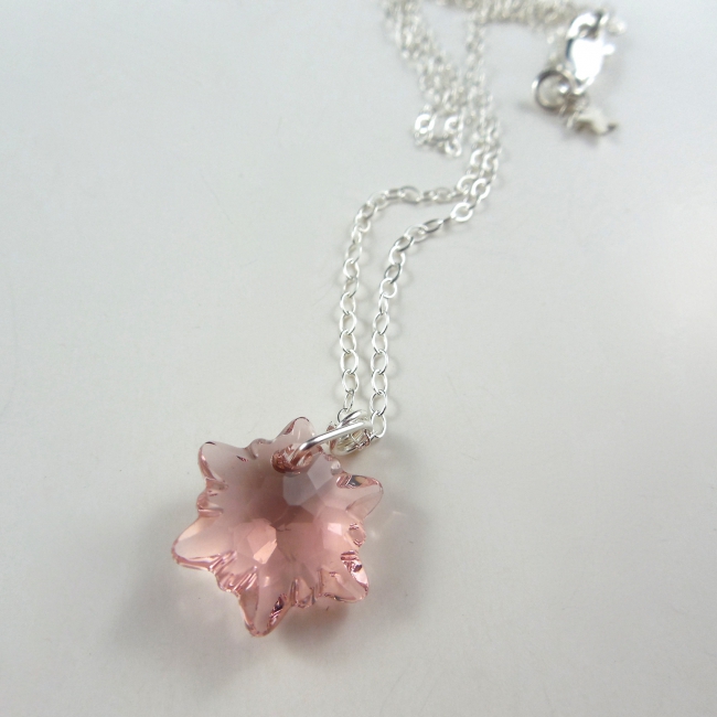 This beautiful edelweiss Swarovski crystal hangs perfectly from a sterling silver necklace.