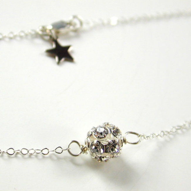 this fine sterling silver necklace with a centered silver Swarovski Elements crystal ball is full of shimmer and shine!