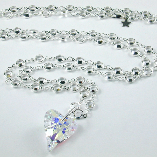 Oh la la, this is a very beautiful necklace with all it's sparkle and shine. This 36 inch long sterling silver and SWAROVSKI Elements crystal chain features a shimmering wild heart crystal pendant. So versatile, because you can wear it short, long, or layered...