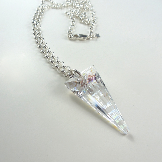 This long (33 inch) heavy roll chain necklace features a jumbo (39 mm) Swarovski Elements crystal spike, which translates into a super-funky-fashion statement necklace!