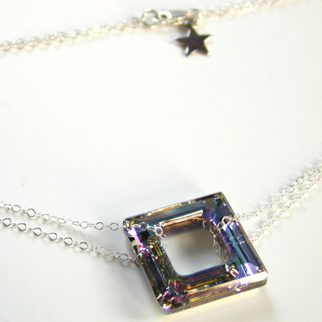 fine double sterling silver necklace with centered large (20mm) crystal square