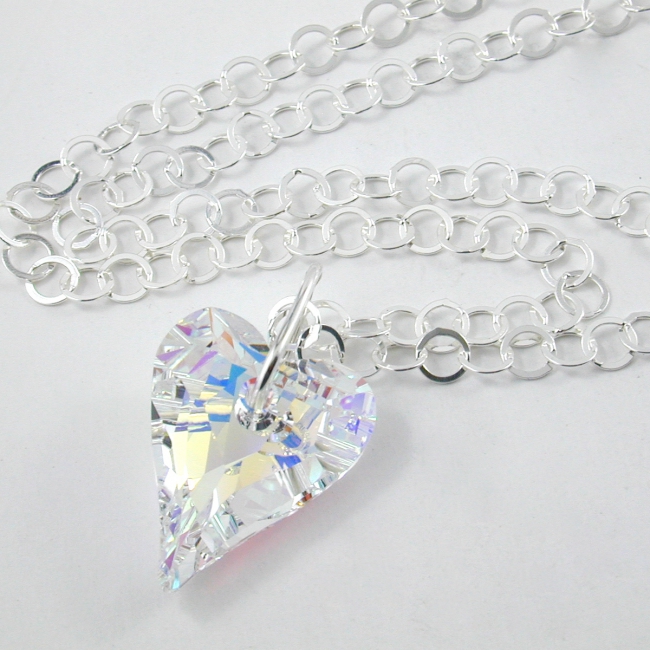 This long, elegant sterling silver loops necklace features a large Swarovski crystal 'wild heart' pendant. Such a perfect piece to pair with any outfit. (necklace is 42 inches in length)