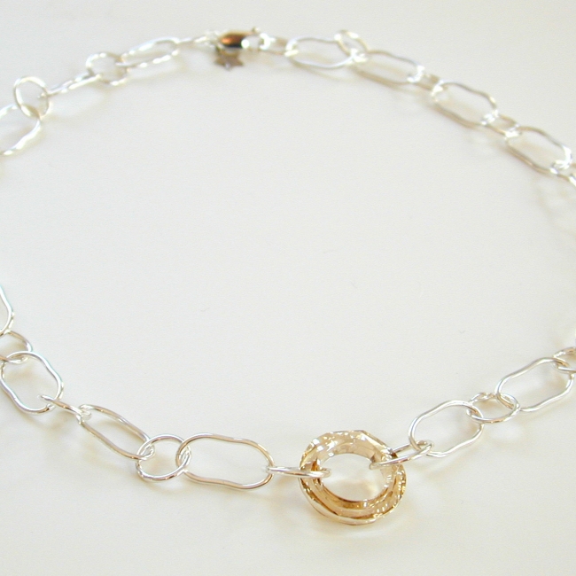 oval and round sterling silver links necklace with centered large (20mm) crystal circle