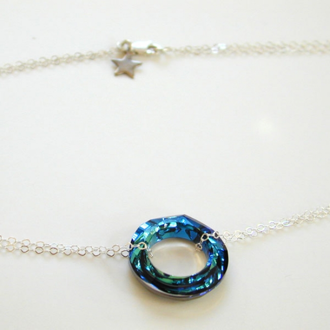 fine double sterling silver necklace with centered large (20mm) crystal circle