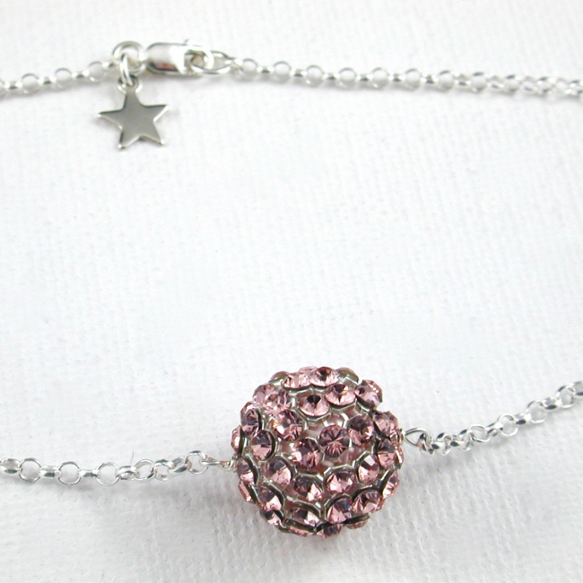 This necklace features the new Swarovski Elements crystal mesh ball centered in a sterling silver necklace. Each mesh ball has a crystal pearl shining through all that bling...