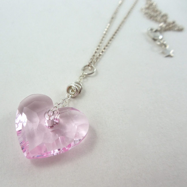 This beautiful Swarovski Elements crystal heart pendant dangles, with lovingly added pieces of silver, on a sterling silver necklace. So full of love!