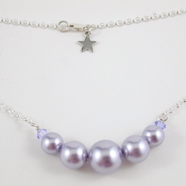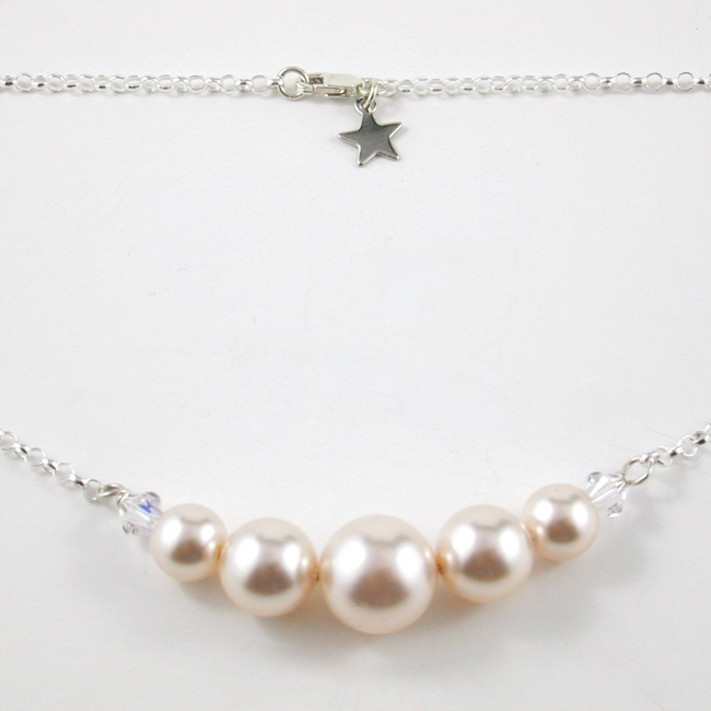 sterling silver rollo chain necklace with a bar of crystal pearls and crystal bicones.