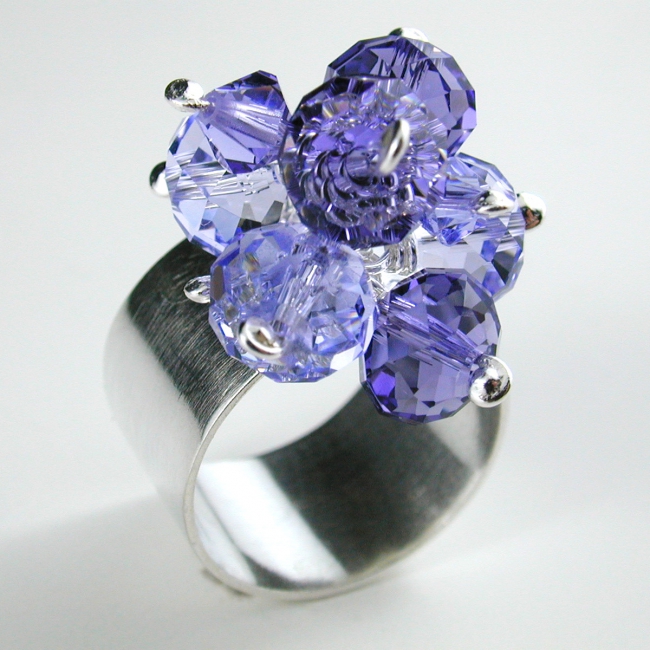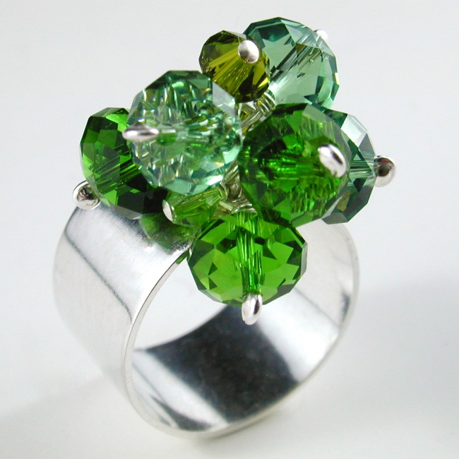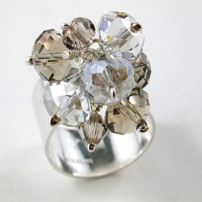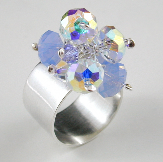 wide sterling silver band with crystal rondelle cluster, available in many color combinations.