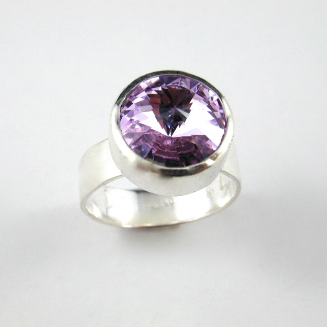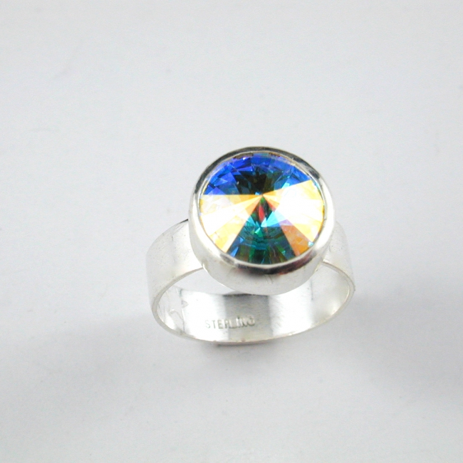 Wow - this sterling silver hand fabricated ring features a stunning chaton rivoli Swarovski crystal that just exudes light! More colors coming... just ask if you want one in a specific color.